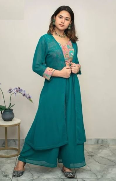 Ladies Cotton Jacket Crop Top Palazzo Set